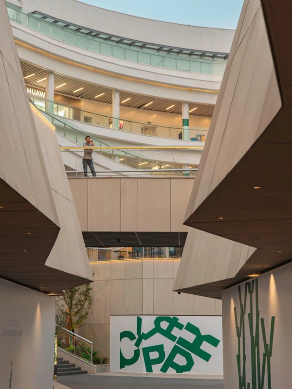 The bottom receives afternoon sunlight at 3 or 4 PM. The special light is entering at an angle and forms these long shadows over the stepped seating areas. It is not flashy, simply unlike the typical indoor mall arrangement. The sunken area in CyPARK is not covered like Taikoo Li, but the open air is open to the sky. You experience the real weather wind, change of temperatures, everything.