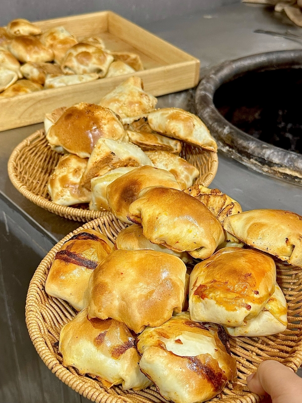 Nang (馕): A flat loaf with various flavours (sesame, spring onion) and shapes. Is hard outside but soft inside. Quite a long life, another necessitous food for living.