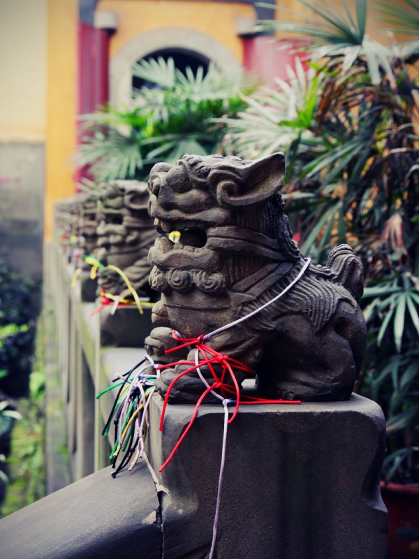 Look up when you go in. The dragon-head brackets at the eaves are all aimed seaward—this is known to the locals as “Great Dragon Locks the River.” It’s designed to keep the waters calm and the homeland safe. The woodwork here is spectacular, the kind of thing that you don’t see any more. These elaborate carvings were not produced by machine. Someone spent months on each one.