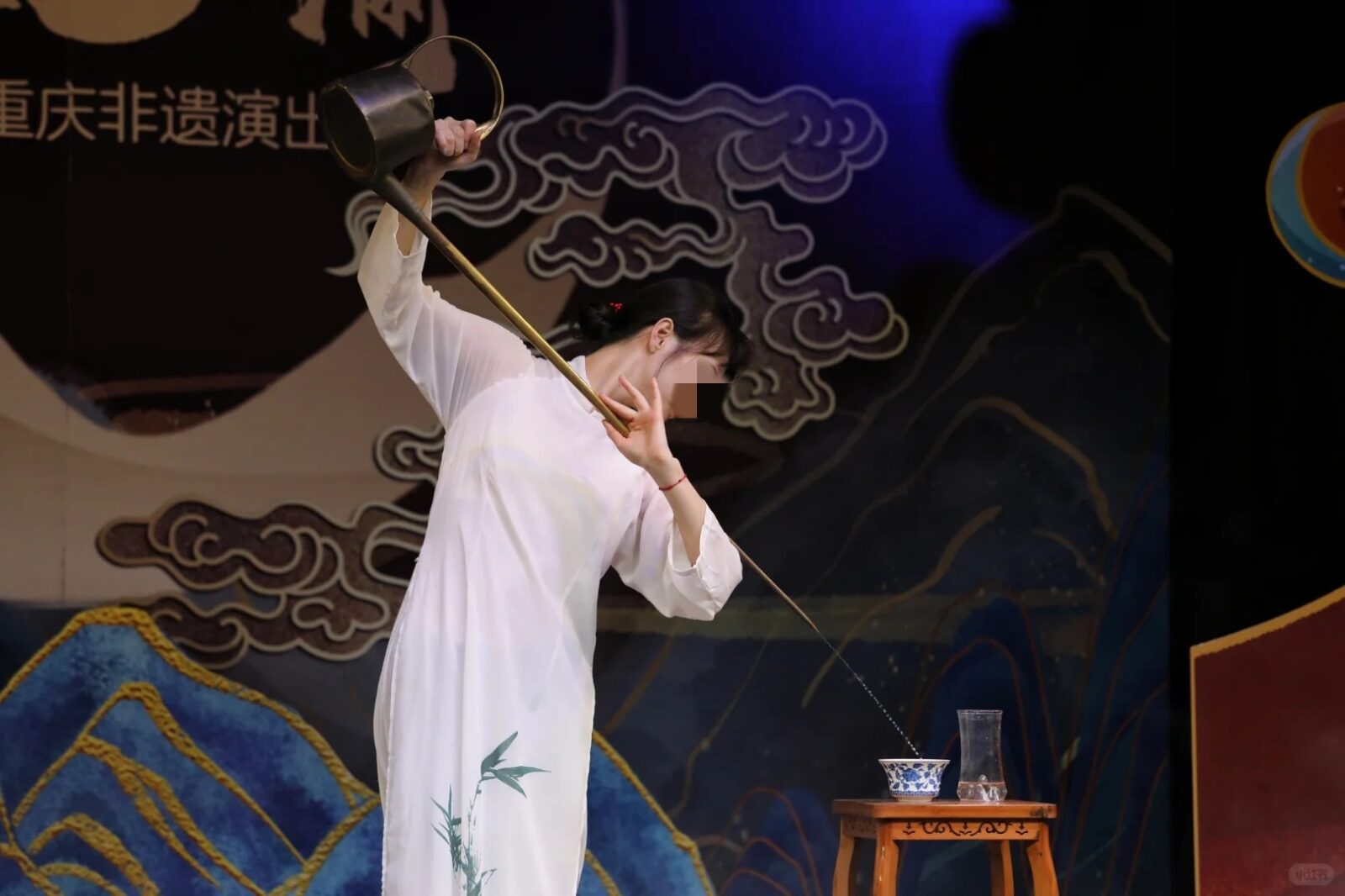 Absolutely, and honestly, you should make time for it. The "Zui Bayu" show runs about 40 minutes, usually with performances at 14:10 and 16:40 (though check current schedules, as times can shift). What you'll see is distinctly Sichuan, not Beijing-style Peking opera. The highlight for most visitors is the face-changing act—performers swap elaborate masks so quickly it genuinely seems like magic. There's also the long-spout teapot pouring, where servers handle these impossibly extended tea pots with ridiculous precision.