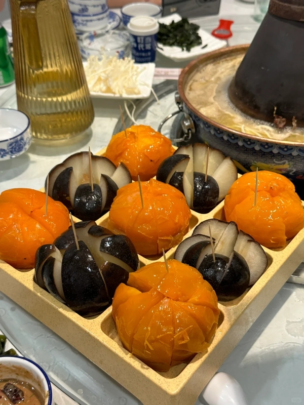 You shouldn’t miss Tanghulu (冰糖葫芦) while on the street, candied fruit skewers that come in a wild assortment of all sorts of fruits from strawberries to cherry tomatoes to all manner of spicy snacks. Grilled Red Sausage (烤红肠) fills the air with the fragrant smell of garlic from every street corner. And whatever you do, make sure to dig into frozen pears and persimmons as they recently soared to fame! These rock-hard fruits thaw in water, bringing out a juicy delight that’s truly refreshing!