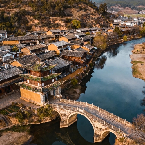 Life revolves around Sideng Square, where Bai and Yi houses line stone lanes. The Friday Market still draws villagers from nearby hills, a living echo of centuries-old trade. Getting here takes about two hours by bus (¥35–40) or a private car (¥300–400). Stay overnight if you can. After crowds leave, Shaxi glows under morning mist and riverside lights. Yujin Bridge, from the Qing era, is best seen at dawn — when locals lead horses to drink, and it truly feels like old China.