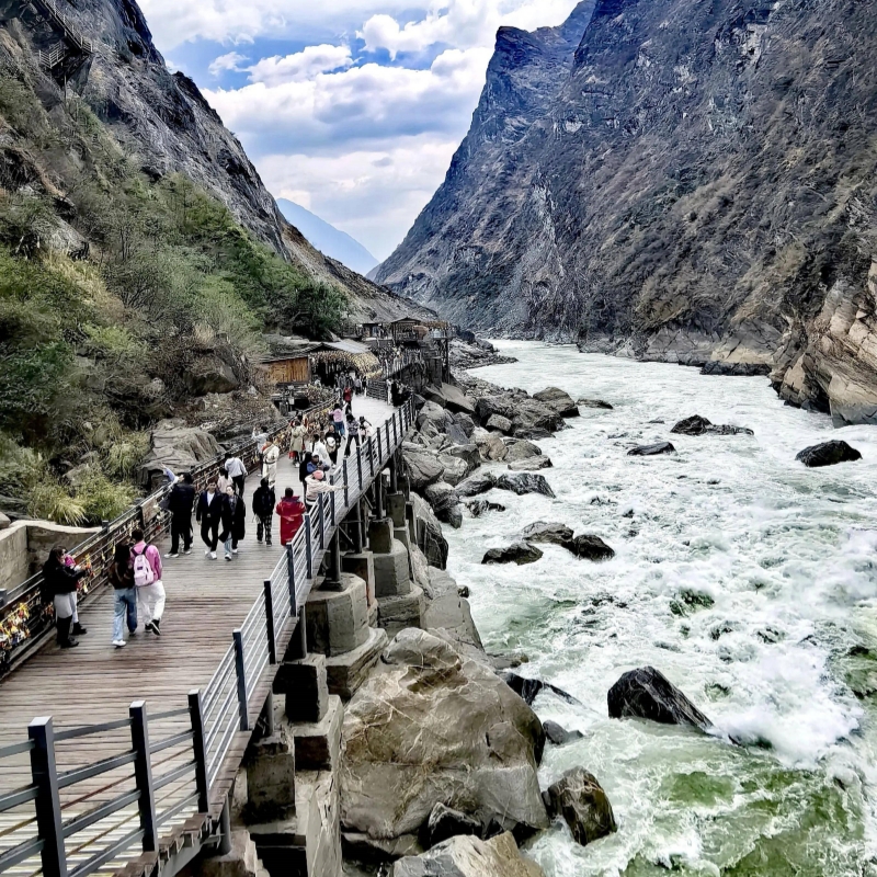 Geological wonder: The gorge begins at the first bend of the Yangtze River, where the river carves sharply downward through ancient rock. It sits between Jade Dragon Snow Mountain (5596m) and Haba Snow Mountain (5396m), creating a dramatic mountain-to-mountain corridor. The total vertical drop reaches 3790 meters, placing it among the world’s deepest gorges.