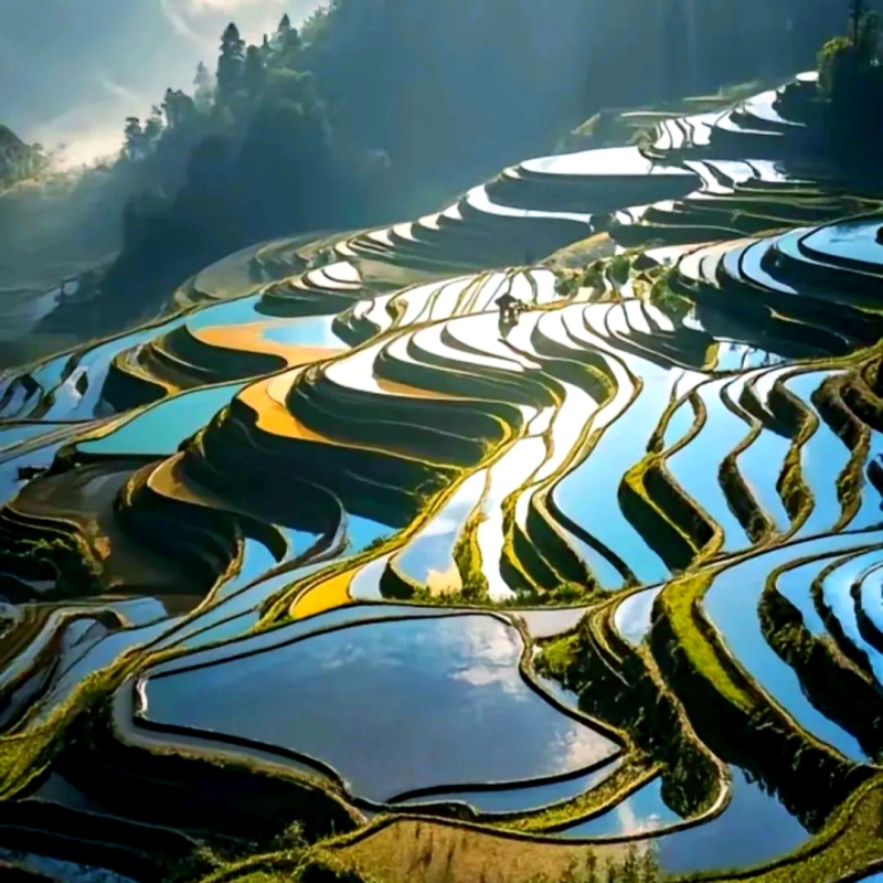 - Luosi Tian: Circular terraced fields, spiral flower patterns (unique)