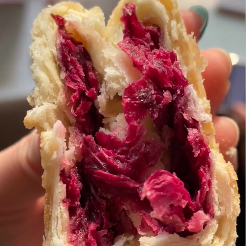 The magic’s in the texture. The crust flakes like a croissant but lighter, while the filling’s floral, chewy, and gently sweet. Cheap ones taste artificial with rose essence, but good bakeries use real petals and just enough sugar to let the flower shine.