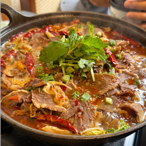 The chicken melts off the bone, and the soup tastes both light and rich. Add mushrooms or herbs if you want extra depth. Most spots charge 68 RMB for a standard pot, while matsutake or black-bone versions reach 180–250 RMB. Fu Zhao Lou (福照楼) offers a balanced one for 120 RMB, great for two. Just don’t sip too soon—the pot stays fiery hot for a while.