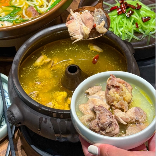 Key Ingredients 🍄🌸Wild mushrooms (Termitomyces, Matsutake), edible flowers, Xuanwei ham, small duck, sour bamboo shoots, lemongrass